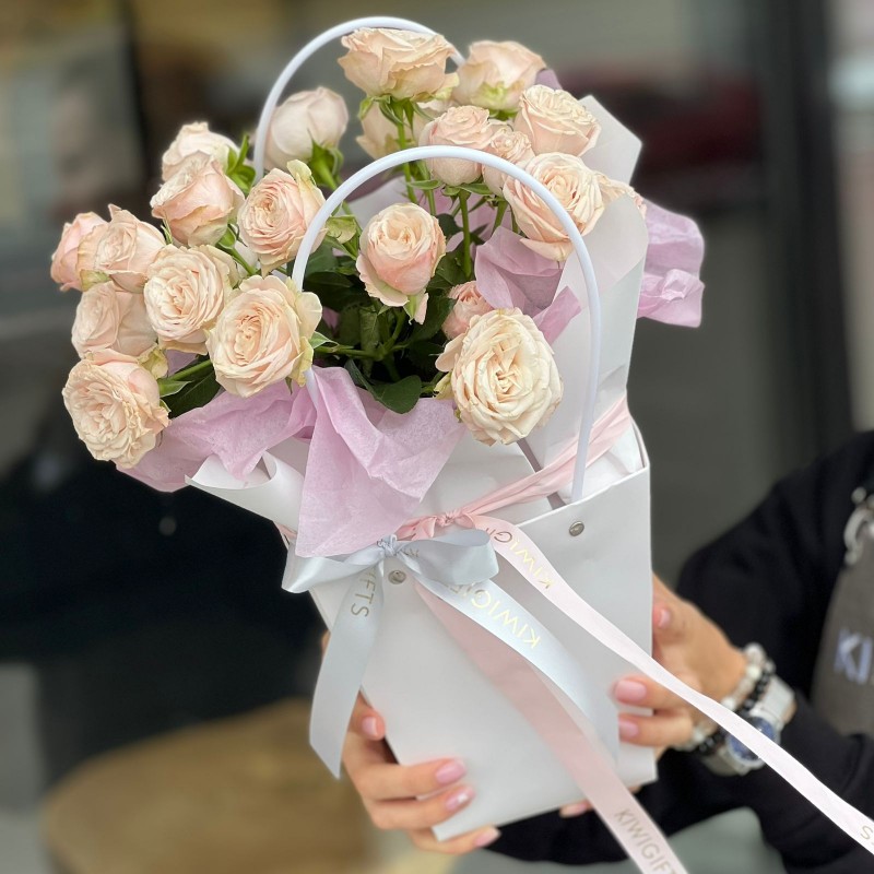 Купить Цветочная композиция в коробке №6 вы можете в компании Kiwi Gifts, оформив заказ в интернет магазине, или
