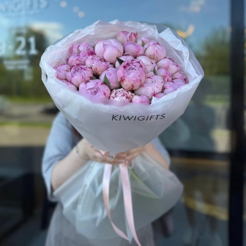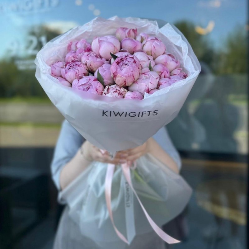 Купить Букет из 25 пионов вы можете в компании Kiwi Gifts, оформив заказ в интернет магазине, или