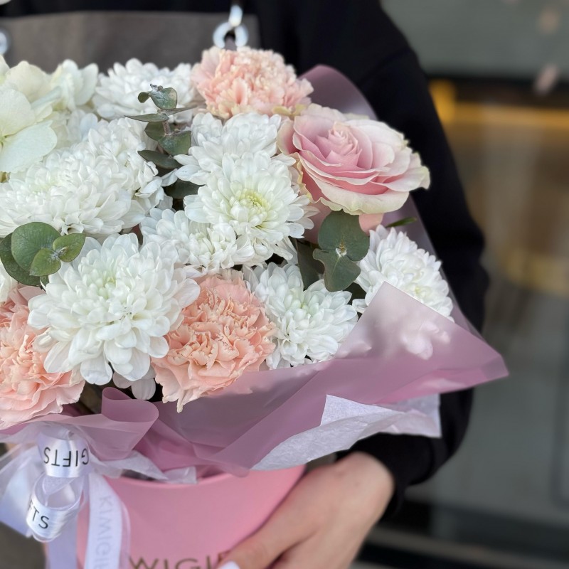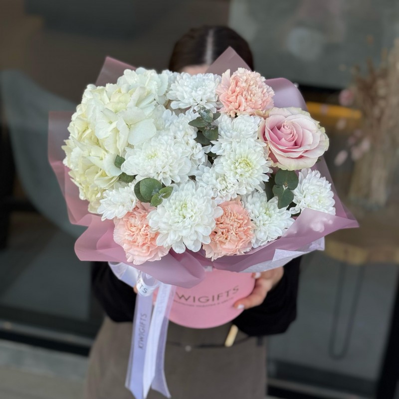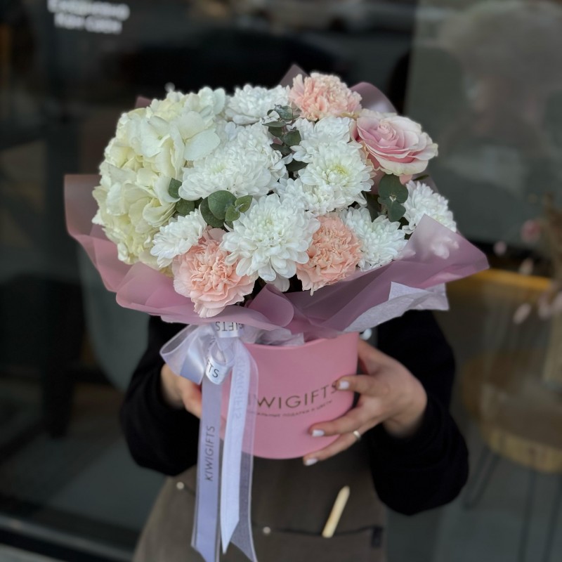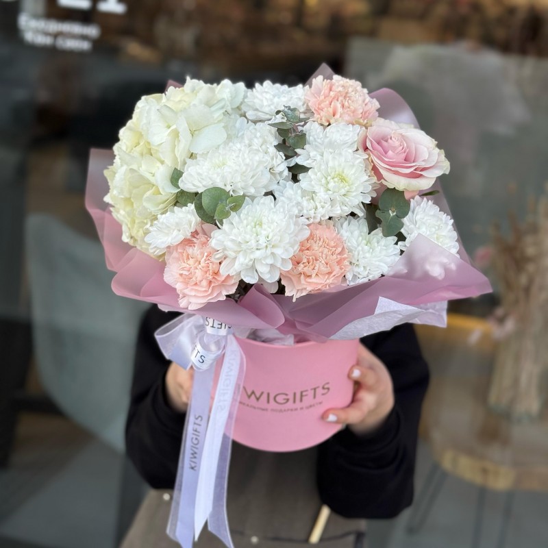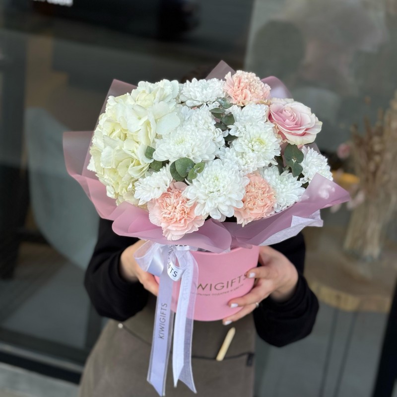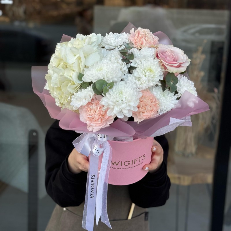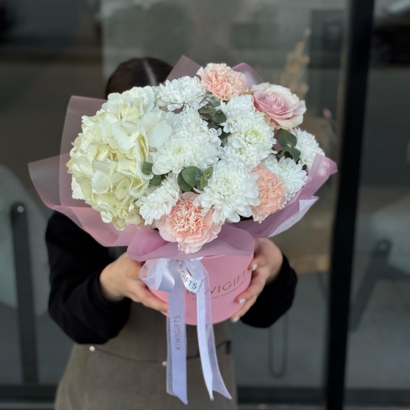 Купить Цветочная композиция в коробке №9 вы можете в компании Kiwi Gifts, оформив заказ в интернет магазине, или