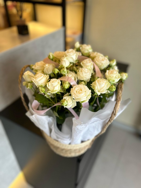 Купить Цветочная композиция из кустовых роз вы можете в компании Kiwi Gifts, оформив заказ в интернет магазине, или