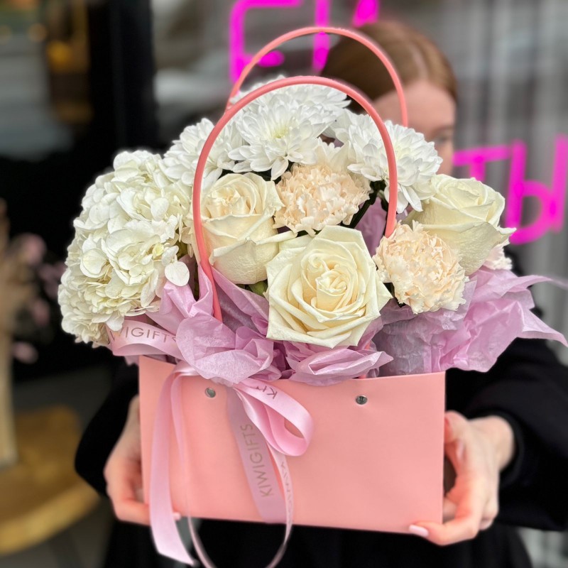 Купить Цветочная композиция в коробке №20 вы можете в компании Kiwi Gifts, оформив заказ в интернет магазине, или