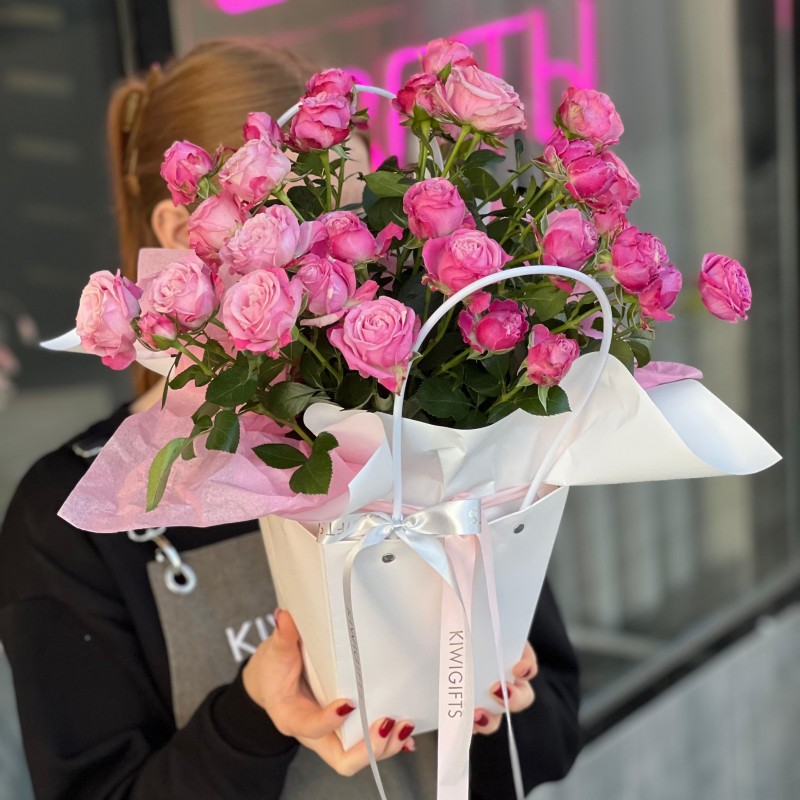 Купить Цветочная композиция в коробке №16 вы можете в компании Kiwi Gifts, оформив заказ в интернет магазине, или