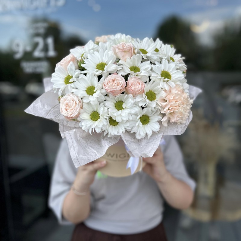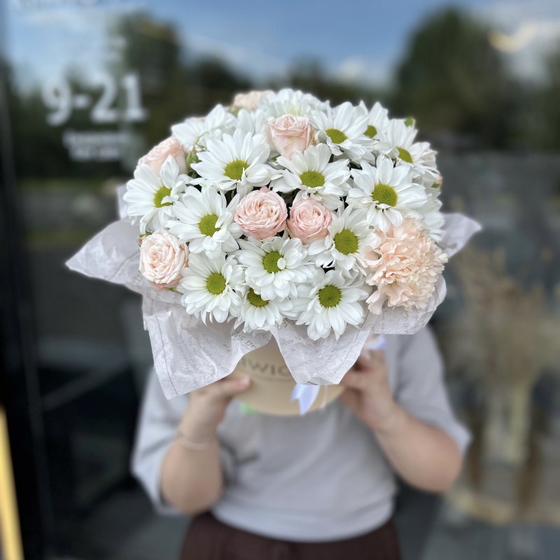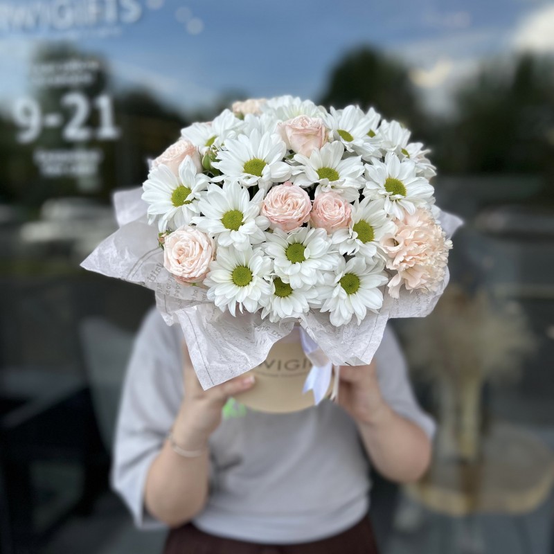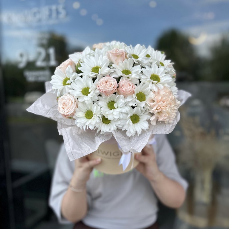 Купить Цветочная композиция в коробке №26 вы можете в компании Kiwi Gifts, оформив заказ в интернет магазине, или